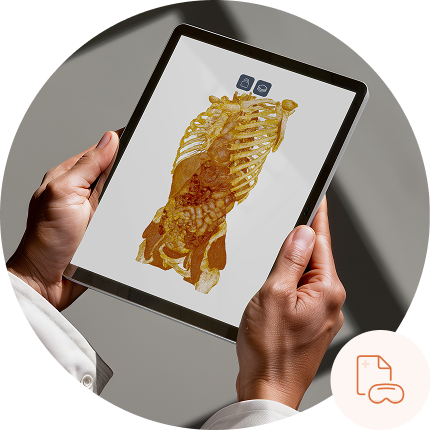 “Enter” the 3D model and view cross-sections in real time. Analyze anatomical structures from perspectives difficult to access with traditional methods.